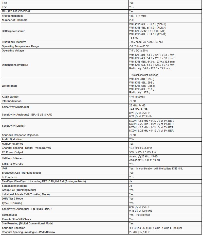 - Gebruiksmodus: Analoog en Digitaal NXDN-protocol