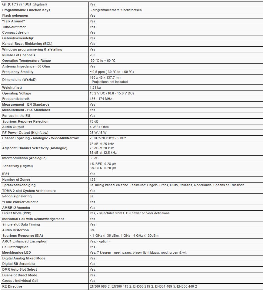 - Gebruiksmodus: Analoog en digitaal met DMR-protocol
