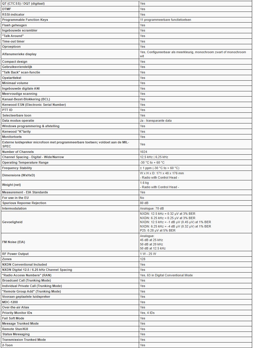 - Gebruiksmodus: Analoog en digitaal met NXDN-protocol